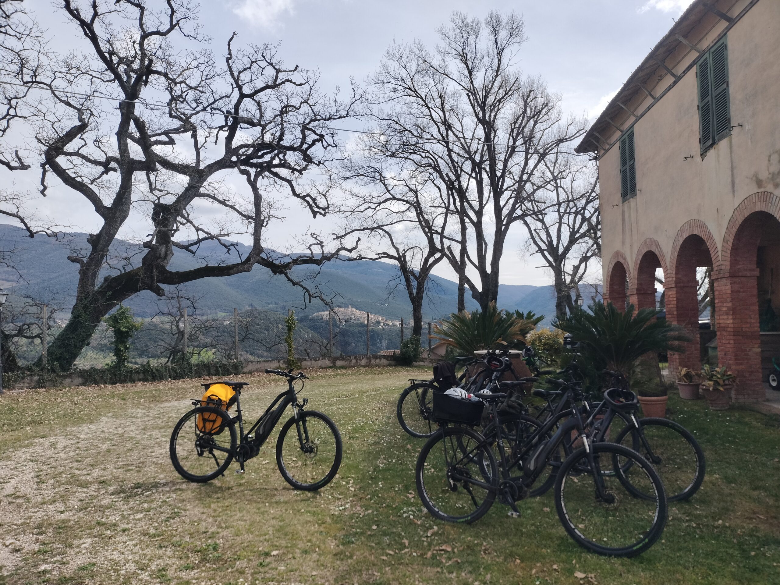 In sella alle e-bike si percorrono strade di campagna che attraversano uliveti secolari, muretti a secco e boschi di leccio, immersi nei paesaggi autentici della Sabina. Il percorso conduce a un’azienda agricola biologica locale situata in posizione panoramica, dove la tradizione agricola del territorio continua a essere coltivata con passione.
